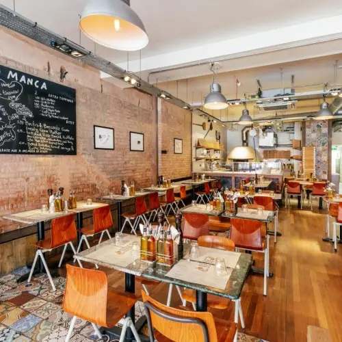 Franco Manca Stoke Newington is a unique, independent pizzeria set up on a historic cobbled street. It offers an authentic Neapolitan dining experience. For a first date, try the classic marinara or the Sicilian salami and oregano pizza and a bottle of their house red wine. To finish, the gluten-free gelato is a must!