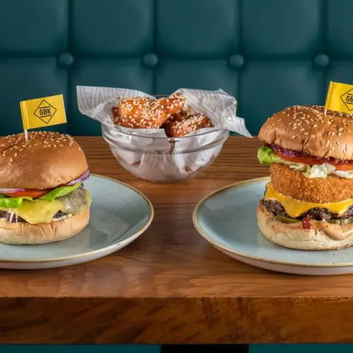 Gourmet Burger Kitchen Bluewater offers a modern dining experience with an extensive menu. Try their classic 'GBK Tower Burger', with hand-pressed homemade beef patty served with bacon, and cheese. Wash it down with a glass of bubbly and finish with a warm and indulgent 'Belgian Chocolate Fudge Brownie'.